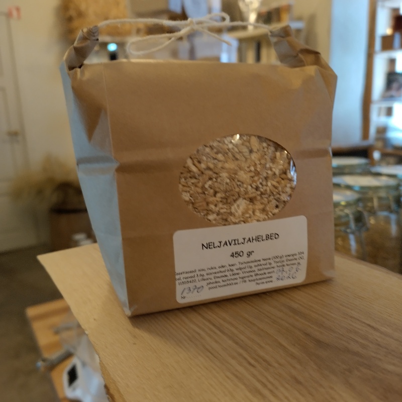 NELJAVILJAHELBED sisaldavad võrdses osas nisu, rukist, otra ja kaera. Neid helbeid ei ole tootmisprotsessi käigus kuumutatud ja need on valmistatud hoolikalt valitud ja puhastatud toiduvilja kvaliteediga viljast.